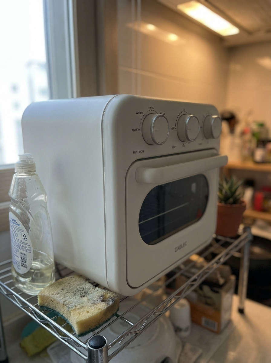 처음 몇 번 사용할 땐 조금의 소음이 있다는 게 느껴졌어요. 에어프라이어 특성상 고온 열풍이 나가야 하니까 피할 수 없는 부분이지만요.